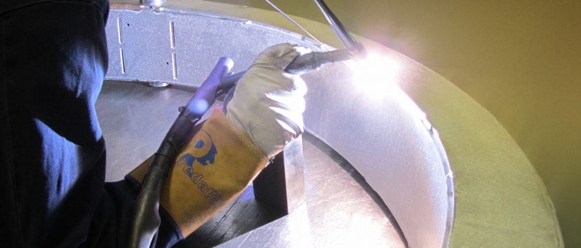 The intake hoop is one of several major components that have been manufactured to our design by Radshape Sheet Metal of Aston, Birmingham – who joined the Quicksilver project in 2007. We are extremely grateful for the considerable contribution Radshape’s highly-skilled specialists have made to our engineering effort to date. The welding has been done by Mark Patrick, who has 16 years’ experience in this trade with Radshape. Our thanks go to him, and to fabrication specialist Billy Howarth – who, having joined the firm 29 years ago, is Radshape’s longest-serving employee and has led the Aston company’s work on Quicksilver. Thanks also to Mark Mitchell and Richard Massey in the CAD department at Radshape, who take our 3D designs and turn them into workable CNC programmes so that all the constituent parts can be laser-cut from aluminium sheet. Mark has been with Radshape for 14 years, Richard ten.